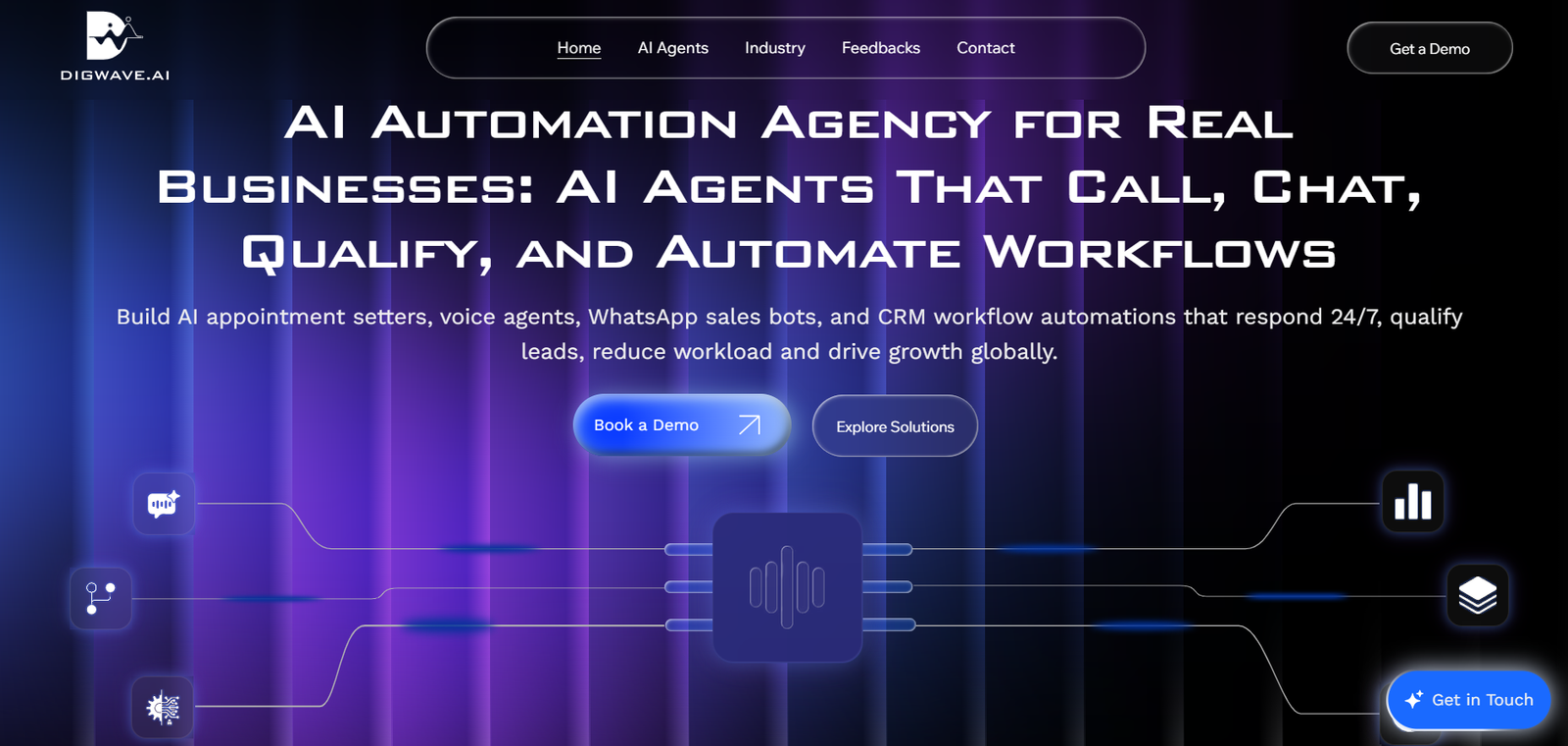 We built a fully responsive, high-performance webapp for Digwave AI to showcase their suite of automation agents, including AI Chat Agents, AI Voice Agents, WhatsApp Sales Agents, and automated lead-tracking tools. The platform was designed to clearly communicate Digwave’s 24/7 support capabilities while guiding users through features, use cases, and onboarding steps with a clean, modern interface.