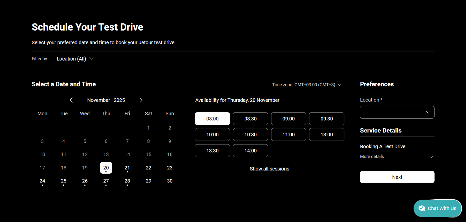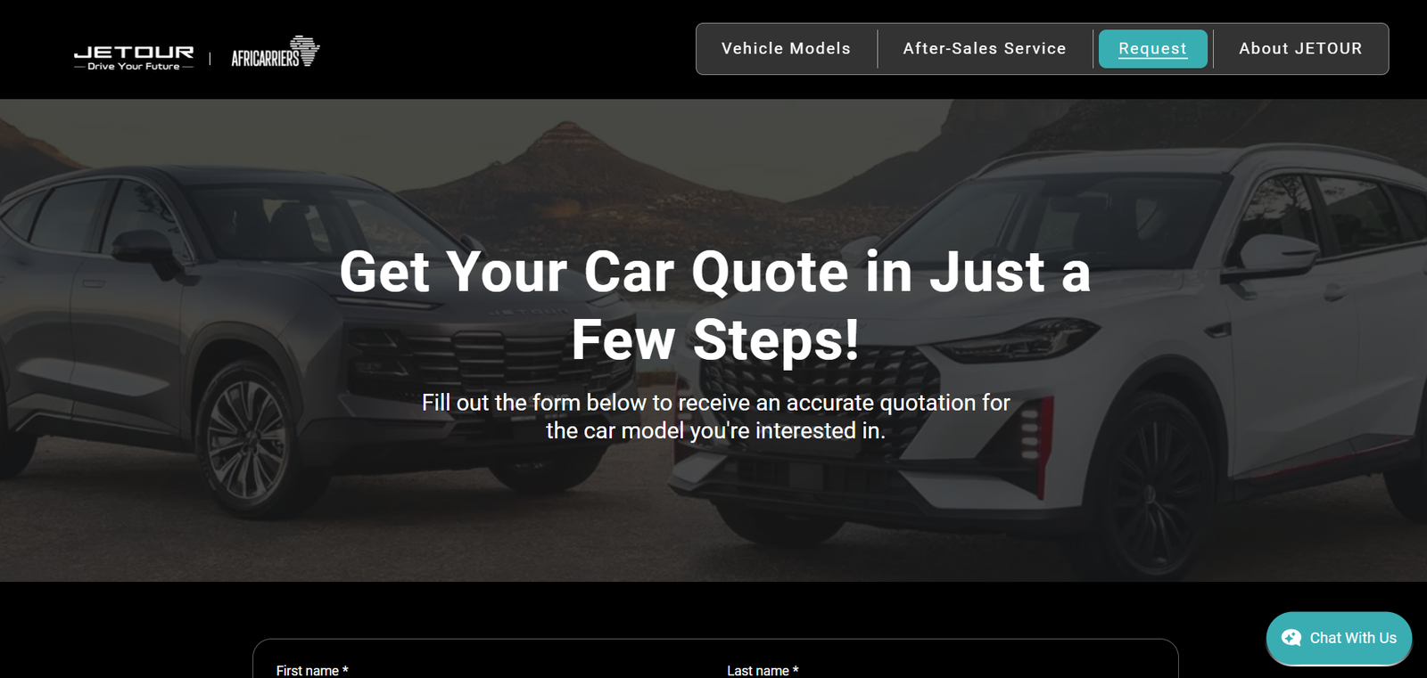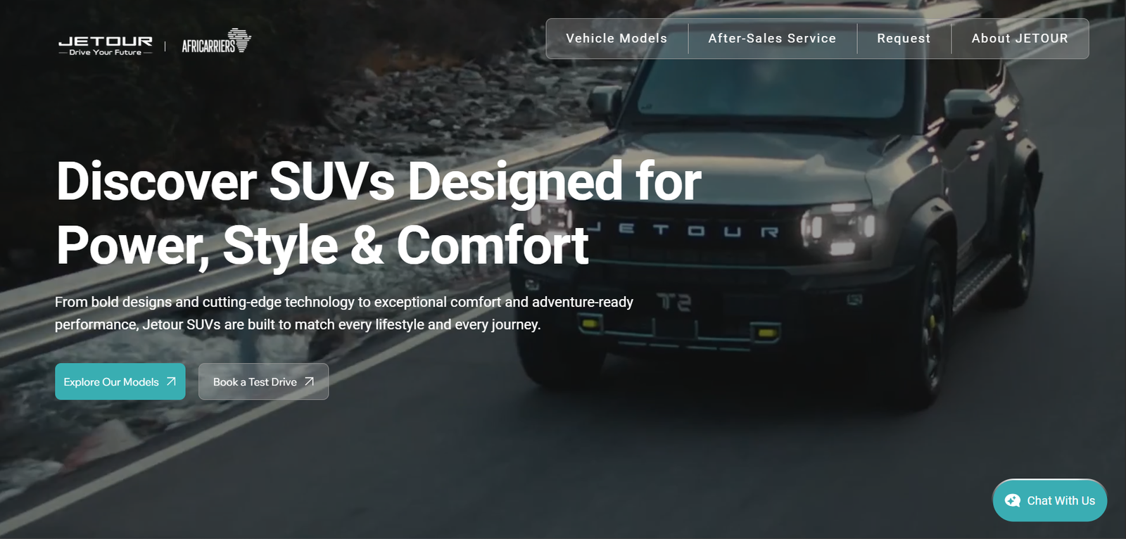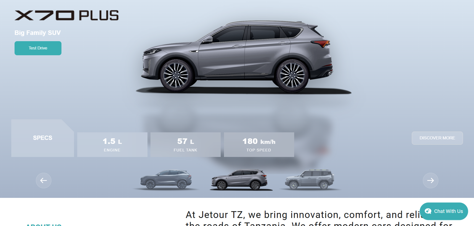 We developed a fully responsive webapp for JETOUR Tanzania designed to showcase their SUV range with a clear, modern interface and a smooth user flow. The platform functions as an interactive digital showroom—allowing visitors to explore models, compare features, view specifications and seamlessly proceed to test-drive bookings or showroom visits.